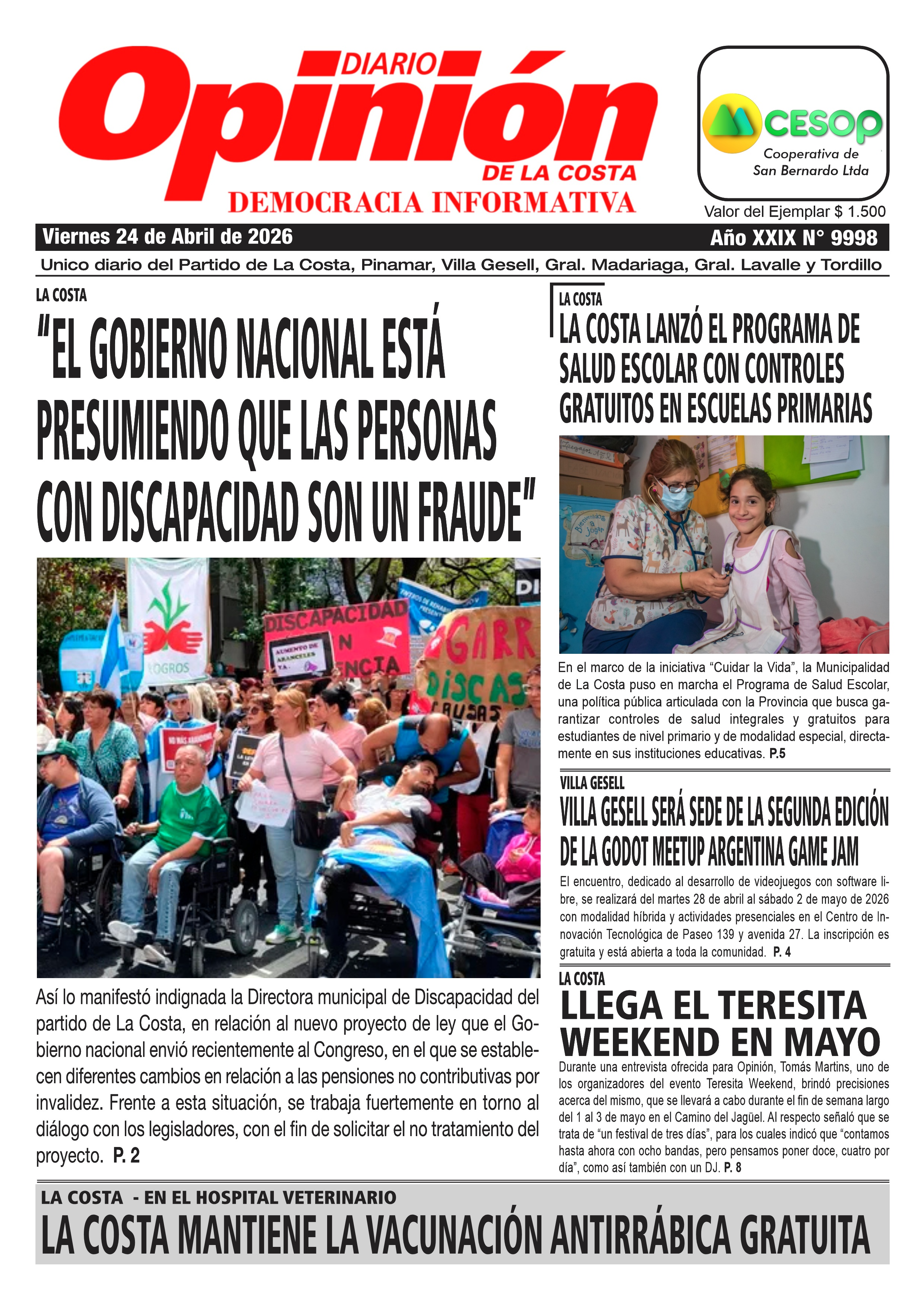 DIARIO OPINION DE LA COSTA PROPIETARIO: Mariano Alberto Bobryk PROPIEDAD INTELECTUAL: RL-2019-11428956-APN-DNDA#MJ Av. San Bernardo 1617 - San Bernardo del Tuyú Partido de La Costa - Buenos Aires - Argentina (C) 2024